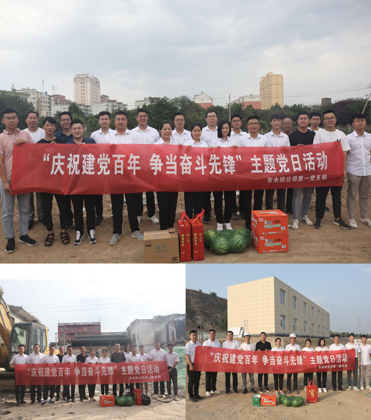 在建黨一百周年之際,為充分表達(dá)黨組織對(duì)一線黨員干部群眾頂酷暑、戰(zhàn)高溫,攻堅(jiān)克難抓建設(shè)的工作干勁的鼓勵(lì)和肯定,對(duì)一線黨員干部群眾的生產(chǎn)生活提供一定的幫助,為他們送去組織的關(guān)心和關(guān)愛(ài),在學(xué)習(xí)活動(dòng)結(jié)束后,支部部分黨員、入黨積極分子共同來(lái)到干河綜合治理工程3標(biāo)段項(xiàng)目工地、姚暹渠禹都段項(xiàng)目工地和鴨子池項(xiàng)目工地,詳細(xì)了解各段施工進(jìn)度及存在的困難問(wèn)題,現(xiàn)場(chǎng)溝通交流、積極出謀劃策,同時(shí)為各項(xiàng)目工地黨員干部群眾送上了西瓜、飲料、防蚊液、花露水等消暑品。