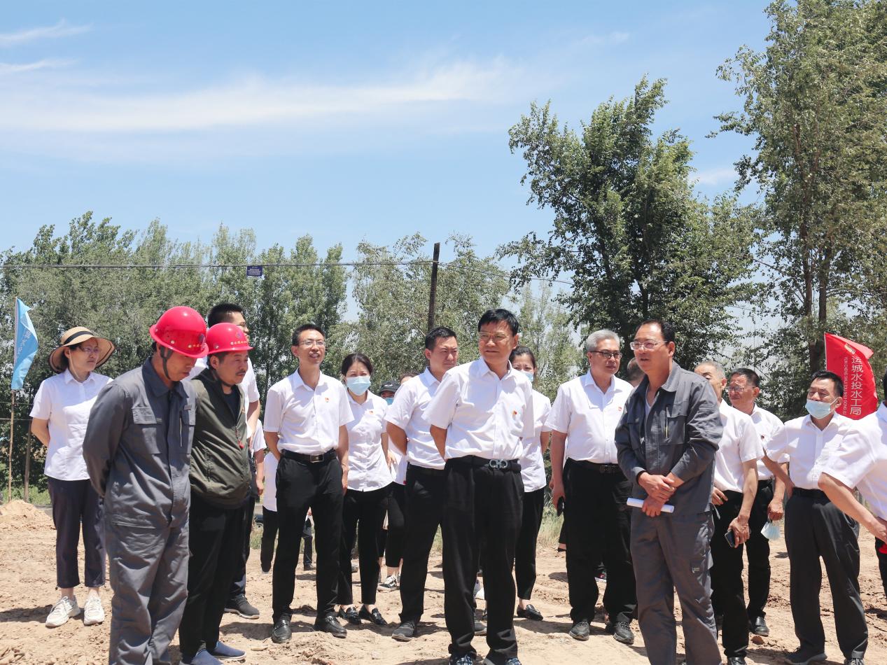 在熱火朝天的工地現(xiàn)場(chǎng),王望寬同志帶領(lǐng)大家重溫了入黨誓詞,鼓舞振奮了士氣,激勵(lì)了大家在本職崗位上建功立業(yè)的決心和信心,也切實(shí)體驗(yàn)了高溫下項(xiàng)目一線建設(shè)者的艱辛。