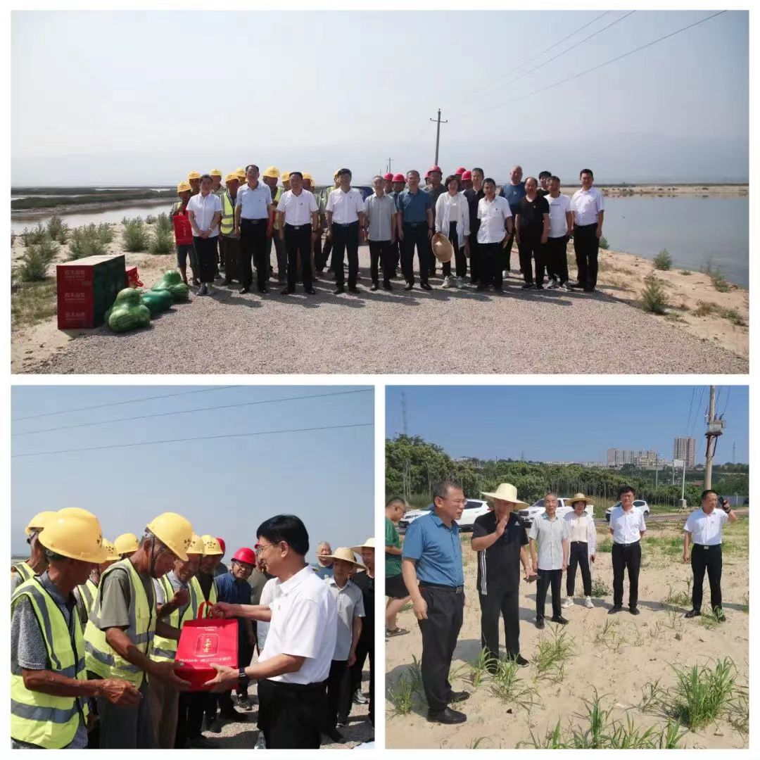 隨后,公司領(lǐng)導(dǎo)一行人來到鹽湖項(xiàng)目11號(hào)堤埝施工現(xiàn)場(chǎng),慰問在高溫酷暑下堅(jiān)持奮戰(zhàn)在一線的工人,并為他們送去防暑降溫慰問品。同時(shí),深入鹽湖堤埝二號(hào)灘和19號(hào)路,詳細(xì)了解灘面護(hù)坡綠化情況,坡面綠草茵茵,不同種類植物長(zhǎng)勢(shì)喜人;現(xiàn)場(chǎng)查看了傾斜電桿更換和扶正處理后情況,一定程度上消除了安全隱患,確保周邊居民和鹽池防汛調(diào)水用電安全,同時(shí)也起到了美化環(huán)境效果。
