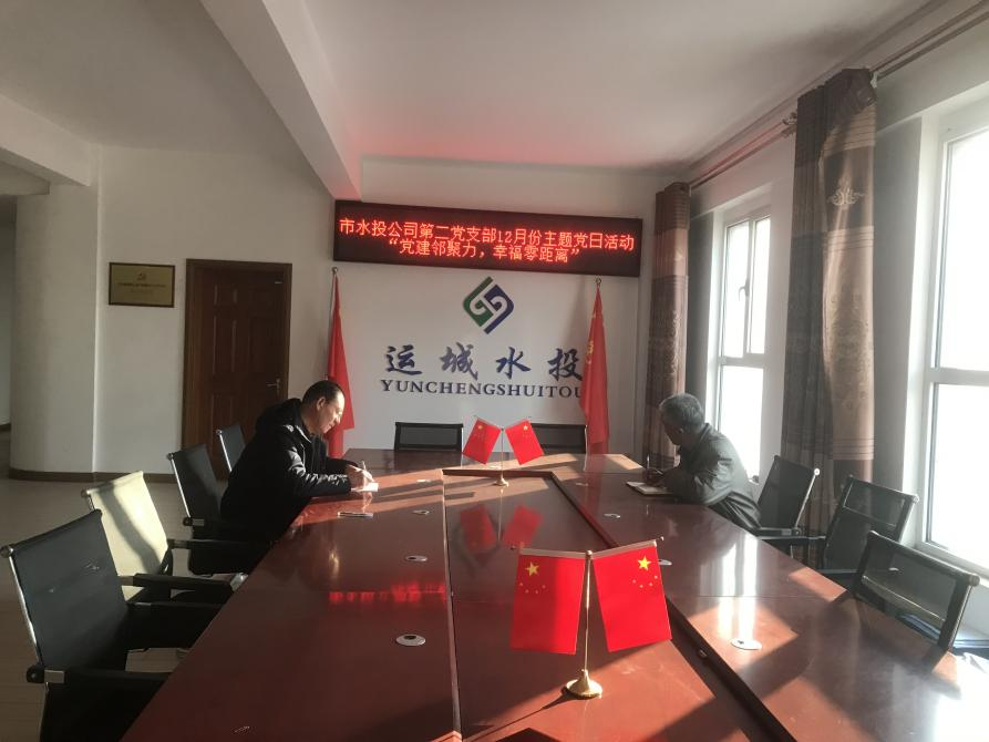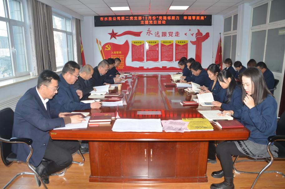 按照市水投公司黨委統(tǒng)一部署要求,第二黨支部于2023年12月4日下午組織全體黨員、積極分子開展了“黨建鄰聚力 幸福零距離”主題黨日活動,會議分為兩個會場進行,支部會議由副書記高鷹主持,臨時黨支部會議由書記吳爭兵主持。