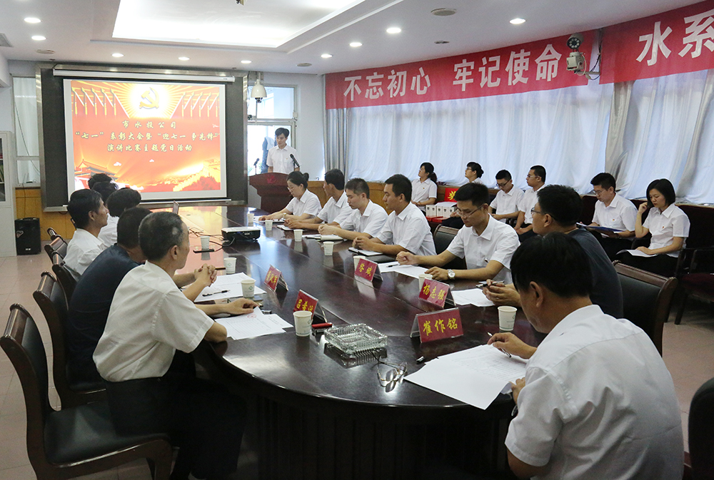 會上,全體黨員干部群眾高唱中華人民共和國國歌,全體黨員重溫了入黨誓詞。黨辦主任昝斌宣讀了公司黨委《關于表彰公司2018年度優(yōu)秀共產(chǎn)黨員和優(yōu)秀黨務工作者的決定》。主題黨日活動的內(nèi)容為“迎七一爭先鋒”演講比賽。公司4位黨員和4位入黨申請人登臺演講,通過樸實的話語、真摯的情感和動人的事跡,全面展示了水投員工愛黨愛國、忠誠擔當、無私奉獻的良好形象。演講比賽之后公司黨委書記崔作銘和市國資委黨建科兩位科長為優(yōu)秀共產(chǎn)黨員、優(yōu)秀黨務工作者和演講比賽優(yōu)勝者頒發(fā)了證書。