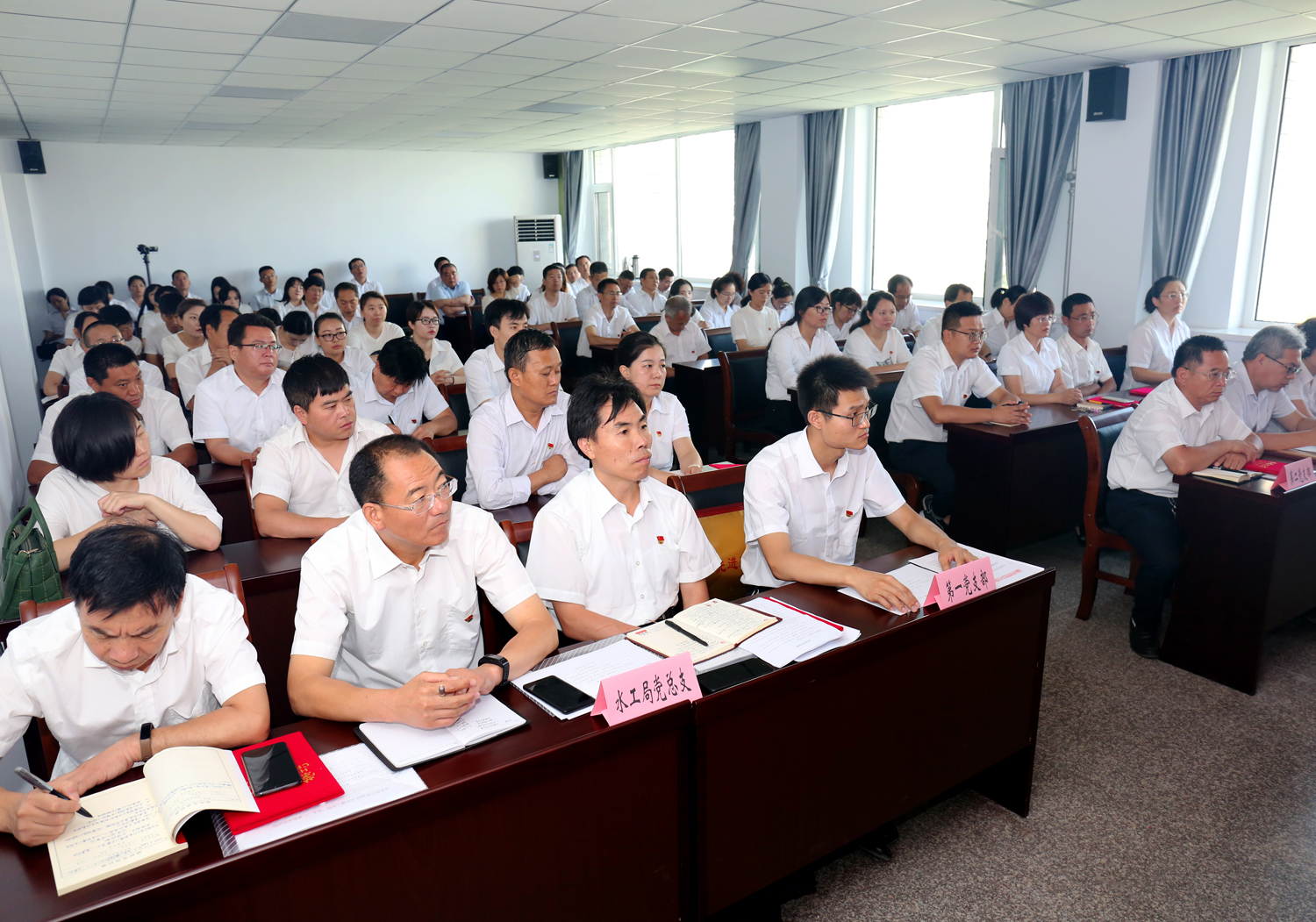 公司黨委書記崔作銘在講話中重溫了黨的光輝歷史和公司發(fā)展歷程,充分肯定了各單位黨基層組織和全體黨員干部在黨建工作、生產(chǎn)經(jīng)營(yíng)、項(xiàng)目推進(jìn)、涉水資產(chǎn)劃歸劃撥等方面所作出的突出貢獻(xiàn),并對(duì)各黨(總)支部和全體黨員提出了三點(diǎn)要求:一是進(jìn)一步發(fā)揮黨建引領(lǐng)作用,確保黨建工作走在前列。二是要進(jìn)一步打造高標(biāo)準(zhǔn)黨組織,發(fā)揮黨支部戰(zhàn)斗堡壘作用。三要圍繞經(jīng)營(yíng)抓黨建,抓好黨建促發(fā)展。圍繞2019年重點(diǎn)工作承諾和“兩橫三縱八湖圍城”中心城區(qū)水系規(guī)劃建設(shè)目標(biāo),做好河湖生態(tài)治理工作,做到黨建經(jīng)營(yíng)深度融合,相互促進(jìn),圓滿完成年度工作任務(wù),以優(yōu)異成績(jī)向祖國(guó)70周年華誕獻(xiàn)禮。