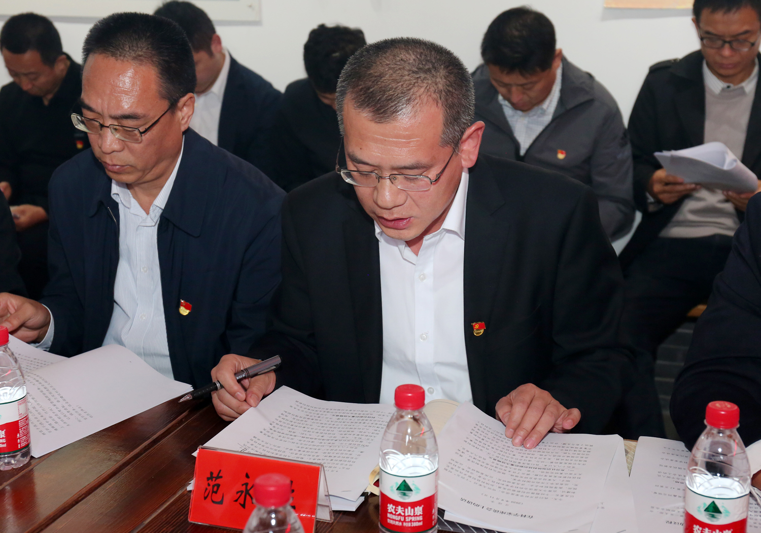 參觀活動結束后,全體黨員來到紅色教育基地會議室,集中繳納了10月份黨費。齊誦了《中國共產黨章程》第四章“黨的地方組織”內容,進一步增強了全體黨員的黨性意識。