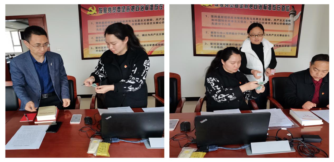 下午,黨員在會(huì)議室完成主題黨日其他規(guī)定動(dòng)作,黨員集中繳納了本月黨費(fèi),并在支部黨員大會(huì)記錄本和“三晉先鋒”軟件上簽到。