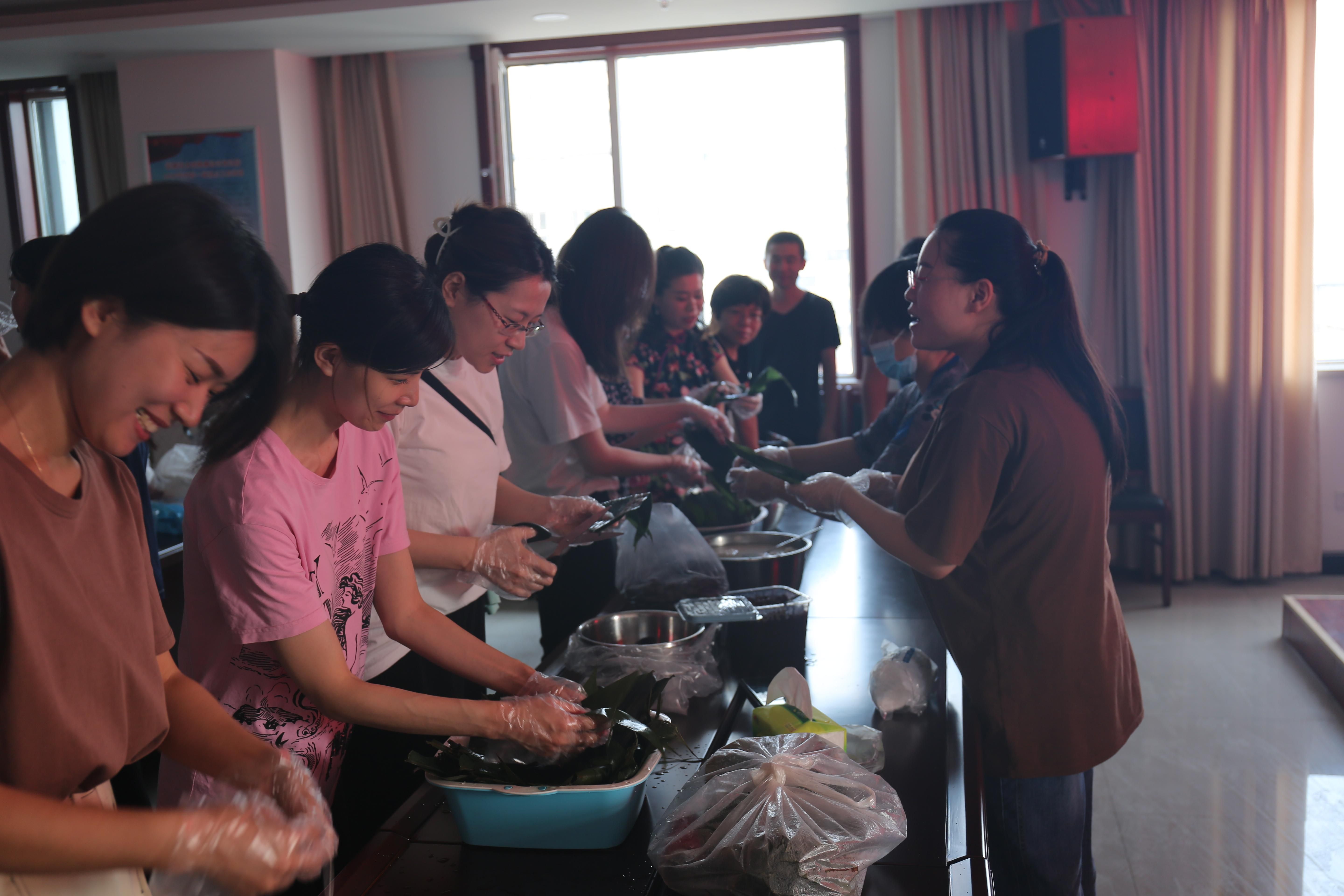 6月11日上午9時(shí),公司參加活動(dòng)的員工早早齊聚現(xiàn)場(chǎng),開(kāi)始準(zhǔn)備。活動(dòng)現(xiàn)場(chǎng)準(zhǔn)備了糯米、粽葉、紅棗等材料,全體員工圍在一起包粽子。雖然大多數(shù)員工是第一次嘗試,但在包粽“高手”的教導(dǎo)下,員工合作起來(lái)包粽子、蒸晉糕,你理粽葉、我包粽,你洗紅棗,我填米,大家積極踴躍,一片歡聲笑語(yǔ),不一會(huì)百十粽子和晉糕就已成型。包出粽子的形狀不一,有三角的有四角的,晉糕也是造型各異。伴隨著水蒸氣的沸騰,熱騰騰出鍋的粽子、晉糕,香氣襲人,大家品嘗著自己的勞動(dòng)成果,內(nèi)心充滿了喜悅。