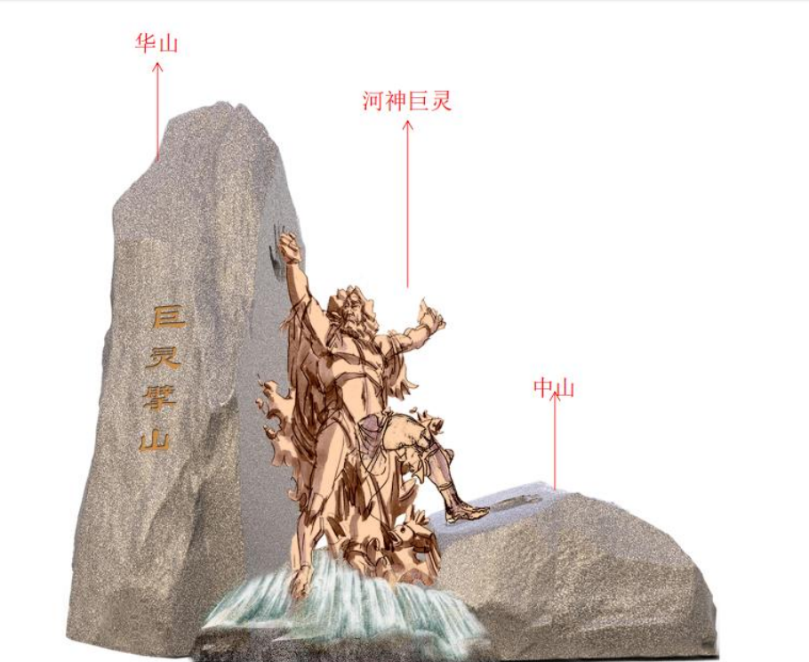 巨靈擘山,誕生中華,隱喻黃河母親,哺育華夏人族,開(kāi)啟中華人類史。人類除了道法自然,還可以掌握規(guī)律,改造自然,從而為參贊化育,造福人類。也說(shuō)明中華民族,本來(lái)一體,不可分割。