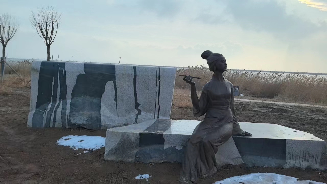 衛(wèi)夫人(272 年-349 年),名鑠,字茂漪,中國(guó)歷史上著名的書(shū)法大家。師承鐘繇,尤其善于楷書(shū)。其書(shū)法被唐人評(píng)作“碎玉壺之冰,爛瑤臺(tái)之月。宛然芳樹(shù),穆若清風(fēng)”,而《筆陣圖》則堪稱中國(guó)最早的書(shū)法理論著作。夏縣蘇莊村東個(gè)大泊池,衛(wèi)夫人每日臨帖習(xí)字,常去清洗筆硯。日久,池水都染成黑色,稱衛(wèi)夫人洗墨池。有年夏天,衛(wèi)夫人習(xí)字,把周?chē)缴系氖瘔K、樹(shù)皮和能寫(xiě)的地方幾乎都寫(xiě)滿了字。一日下大雨,石塊、樹(shù)皮上洗刷一新,雨水和墨跡混為漫天黑水,就有了“山上下過(guò)墨汁雨”的傳說(shuō)。書(shū)圣王羲之幼時(shí)跟她學(xué)書(shū),還特別喜歡畫(huà)鵝。有一次,把整個(gè)鵝都畫(huà)出來(lái)了,就是眼睛左也不成右不成,總感覺(jué)畫(huà)的不好。于是,便請(qǐng)衛(wèi)夫人給他畫(huà)的鵝點(diǎn)睛。衛(wèi)夫人接過(guò)筆便這么一點(diǎn),誰(shuí)知道,這鵝撲閃一下竟飛了。