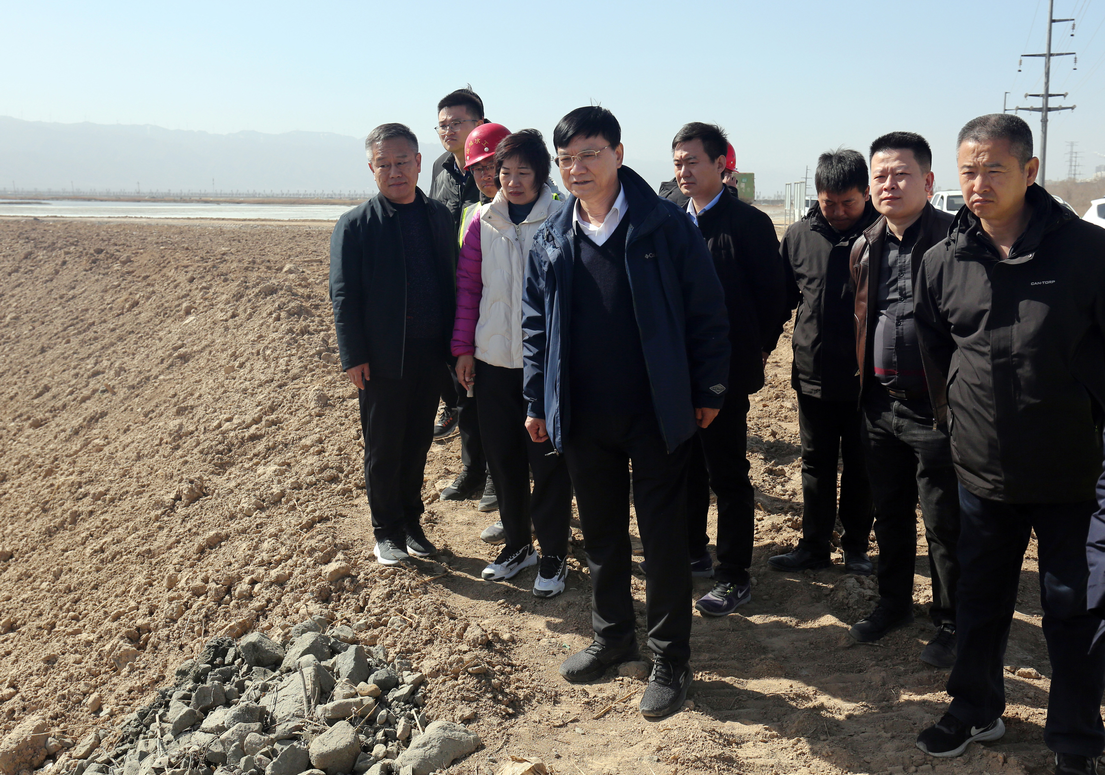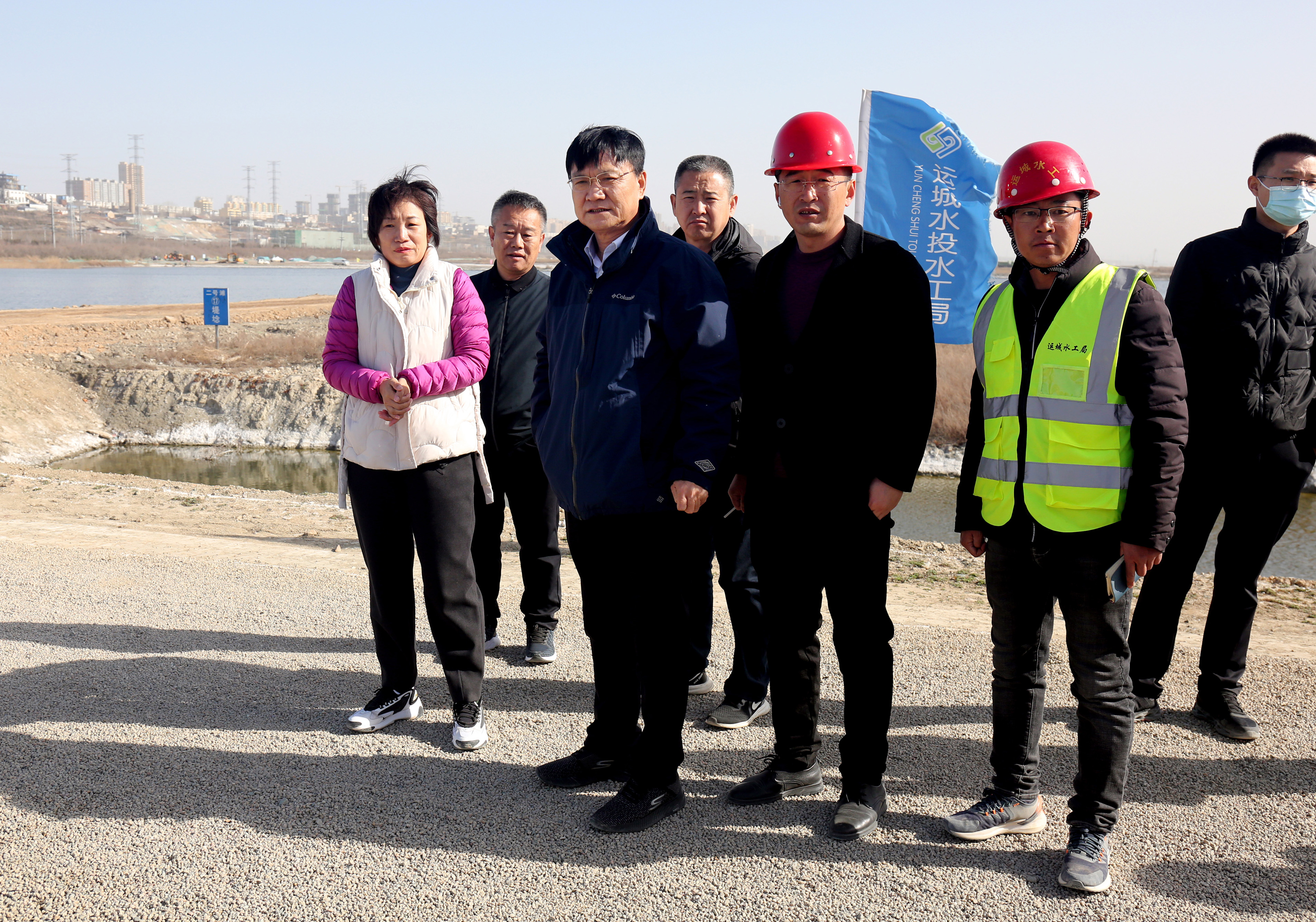 2月26日上午,公司董事長崔作銘赴鹽湖堤埝整治及生態(tài)修復項目工地督察施工進度。