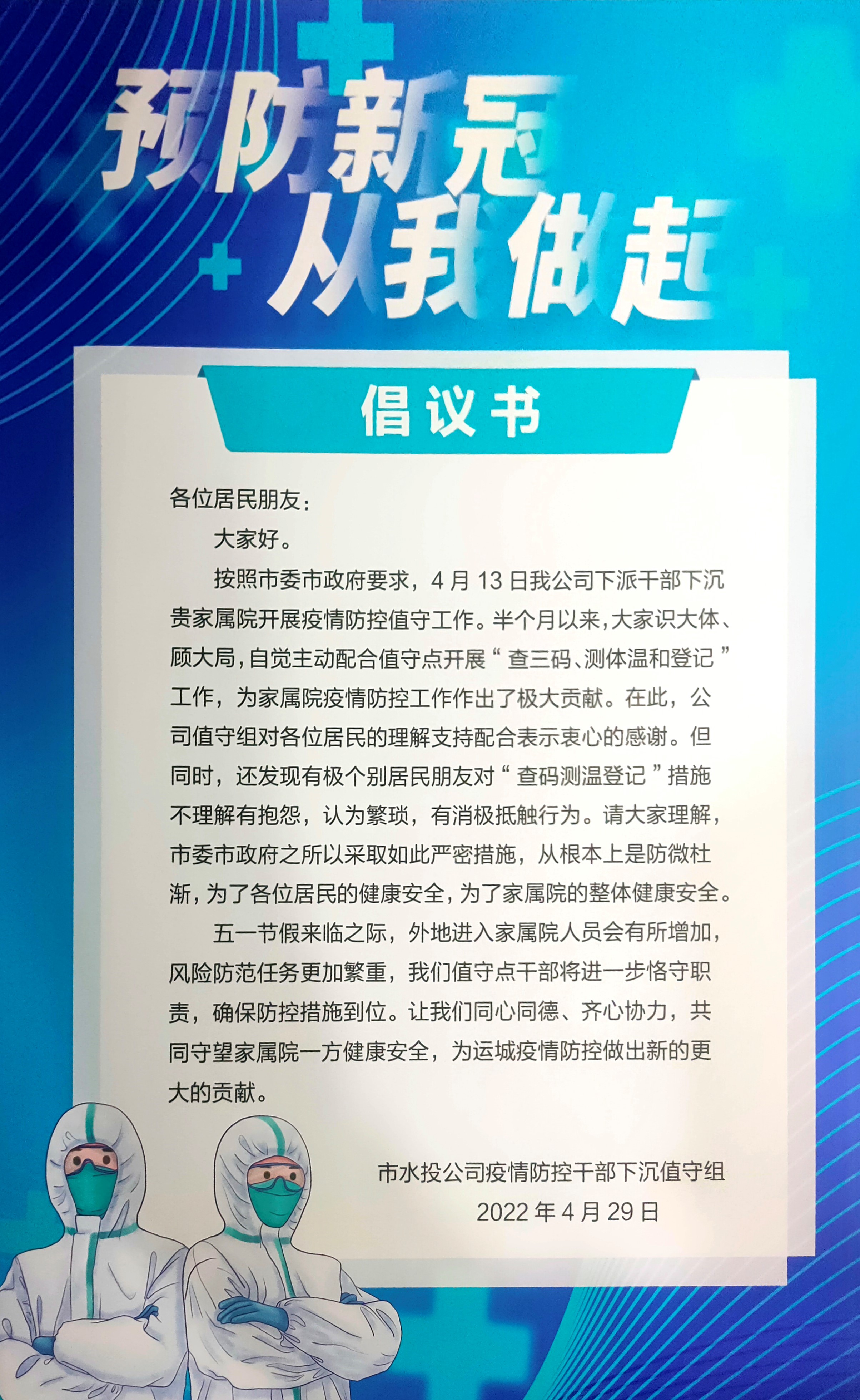 青年興則國家興,青年強則國家強。面對嚴(yán)峻的疫情防控形勢,在很多人戲謔“躺平”時,諸多青年不畏艱險、沖鋒在前,彰顯著奮斗才是時代的主流,用實際行動為疫情防控貢獻青春力量,運城水投公司的青年干部們就是不懼風(fēng)雨,勇挑重?fù)?dān),在戰(zhàn)役中擦亮青春底色,與新時代同心同向同行共奮進。