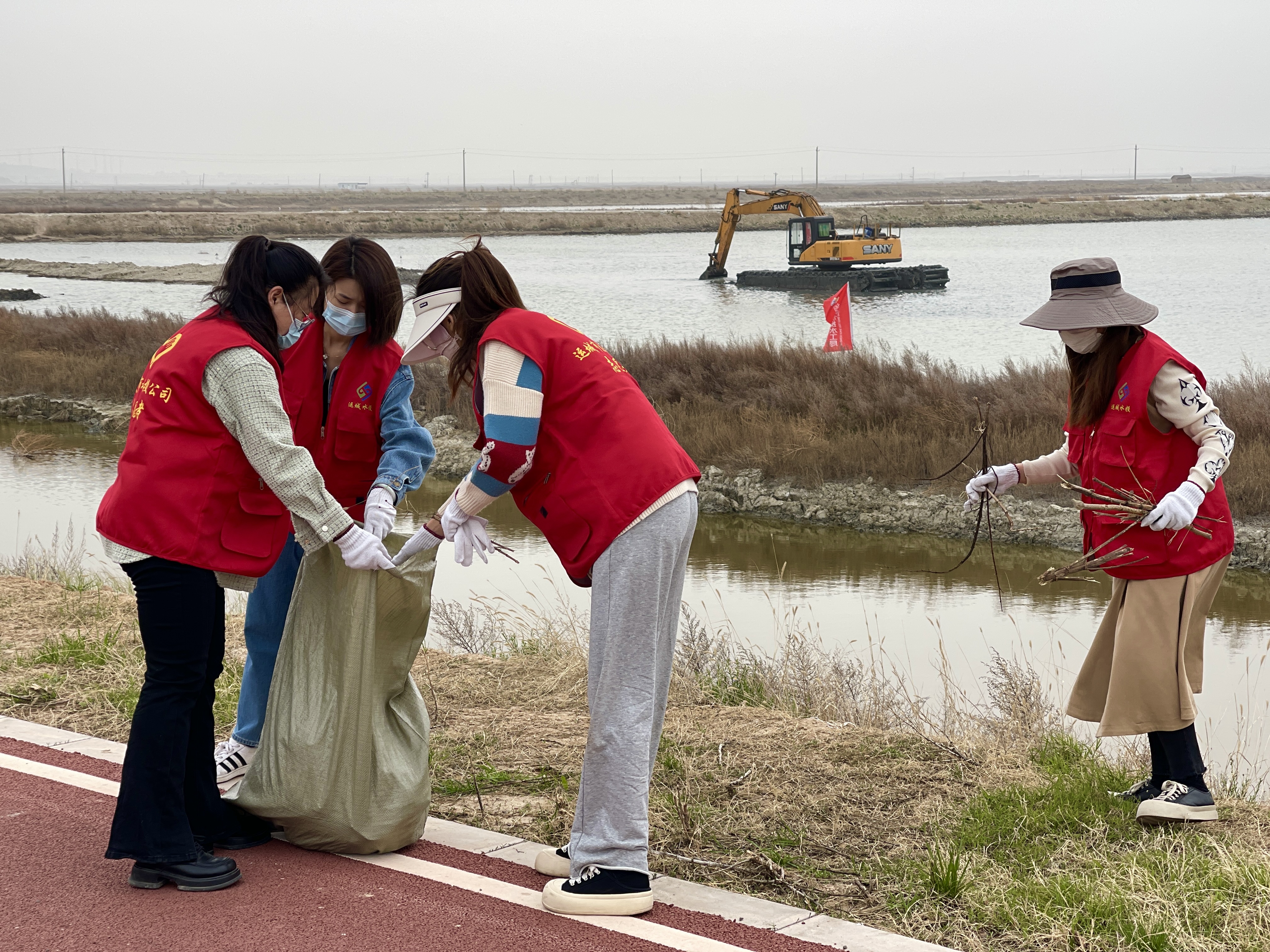 在鹽湖堤埝兩側(cè),全體員工發(fā)揚(yáng)不怕臟,不怕累的工作精神,對(duì)湖道內(nèi)漂浮物、枯草等進(jìn)行打撈,尤其是對(duì)一些隱藏在湖灘草叢里的垃圾,進(jìn)行了細(xì)致的清理。湖道外,三五人一組,分片分段沿著七彩綠道徒步撿拾零食包裝袋、飲料瓶、紙巾、香煙盒等白色垃圾。共清理湖長(zhǎng)約6公里,撿拾垃圾50多袋,外運(yùn)垃圾20車。