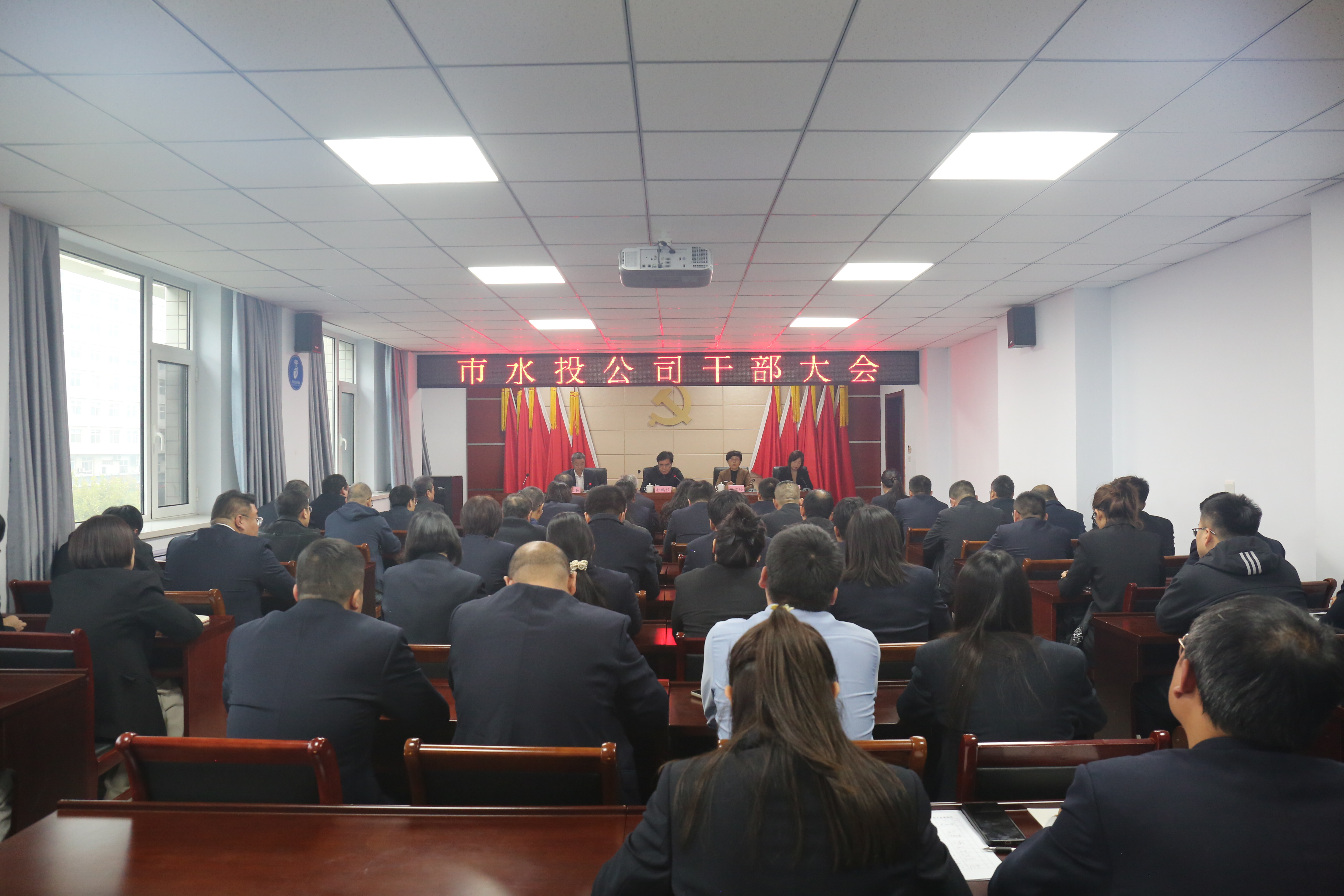 10月21日下午,市水投公司召開干部大會(huì)。市政府副市長(zhǎng)孫鵬程,市委組織部副部長(zhǎng)、市委老干部局局長(zhǎng)丁文玲出席會(huì)議并講話。公司黨委書記、董事長(zhǎng)薛文兵主持會(huì)議。公司及子公司班子成員、公司全體干部職工參加會(huì)議。