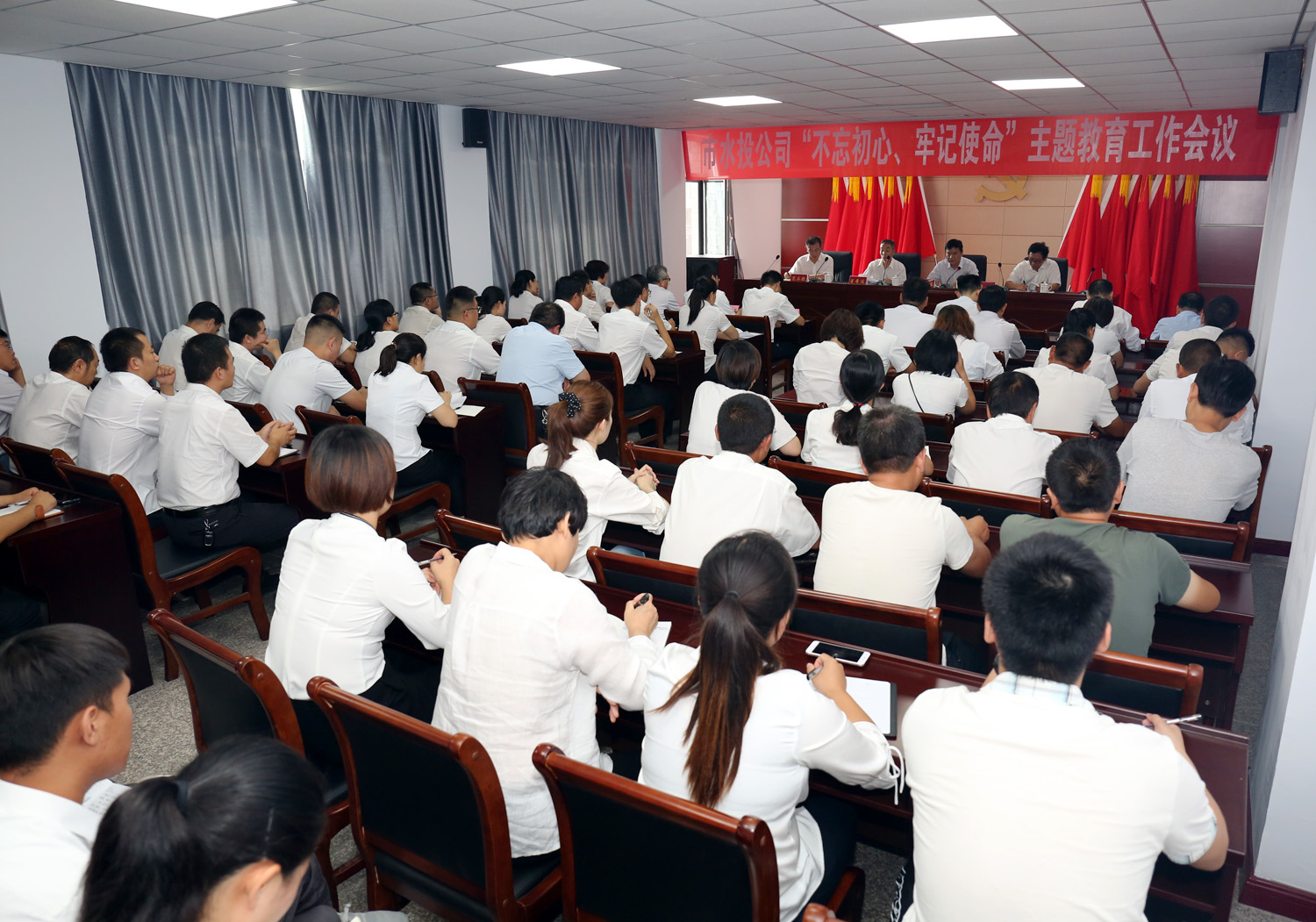 9月13日下午,我公司召開“不忘初心、牢記使命”主題教育工作會議,對扎實開展“不忘初心、牢記使命”主題教育進行動員部署。公司黨委書記崔作銘出席會議并講話,公司黨委委員呂希汶主持會議,市國資委主題教育第三指導(dǎo)小組到會指導(dǎo),各黨(總)支部全體黨員參加會議。