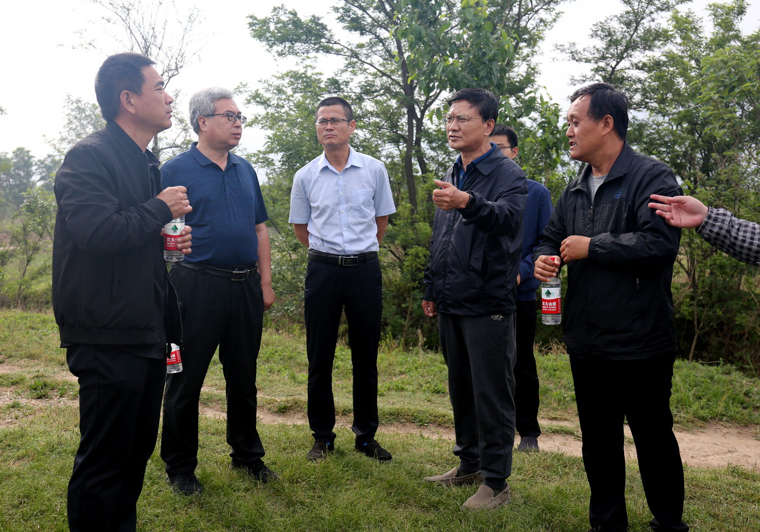 為加快推進(jìn)鴨子池水生態(tài)綜合提升工程施工進(jìn)度,5月20日上午,公司董事長(zhǎng)崔作銘帶領(lǐng)公司相關(guān)人員,會(huì)同市水務(wù)局、設(shè)計(jì)單位、項(xiàng)目公司、項(xiàng)目部就環(huán)湖路工程、泵站排水壓力管線工程,步行從鴨子池泵站沿堤壩逐段實(shí)地查看,現(xiàn)場(chǎng)辦公,針對(duì)施工中所存在的問(wèn)題,與設(shè)計(jì)單位、項(xiàng)目公司相關(guān)人員現(xiàn)場(chǎng)商議,交換思路,協(xié)商方案。