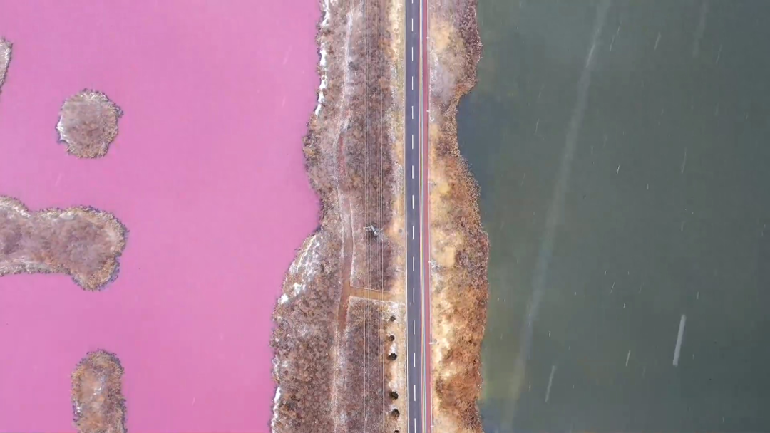 近日,山西運城迎來大范圍降雪,冬日里呈現(xiàn)出多種顏色的鹽湖,在白雪的裝扮下分外美麗。
